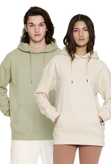 Besonders schwerer, übergroßer Kapuzenpullover aus streng zertifizierter Bio-Baumwolle. Hergestellt nach den Richtlinien der Fairwear Foundation.